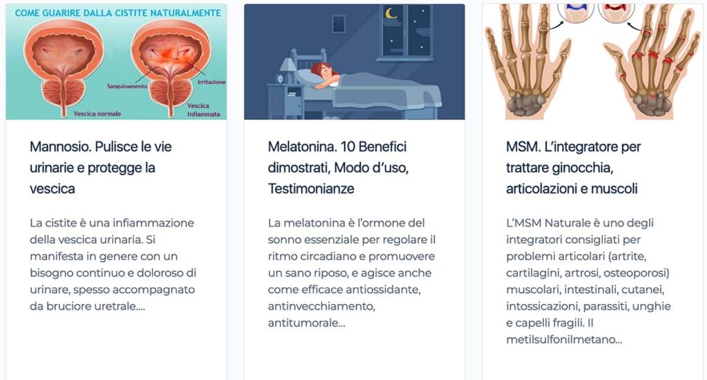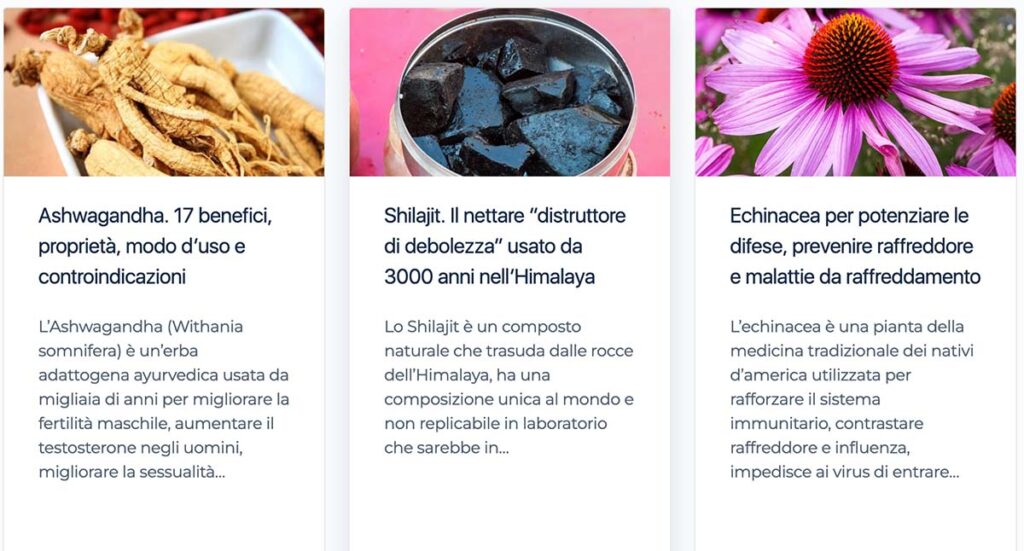 Oltre 2000 articoli approfonditi su integratori, fitoterapici, rimedi naturali, condizioni, crescita personale. Ecco un esempio degli ultimi pubblicati.